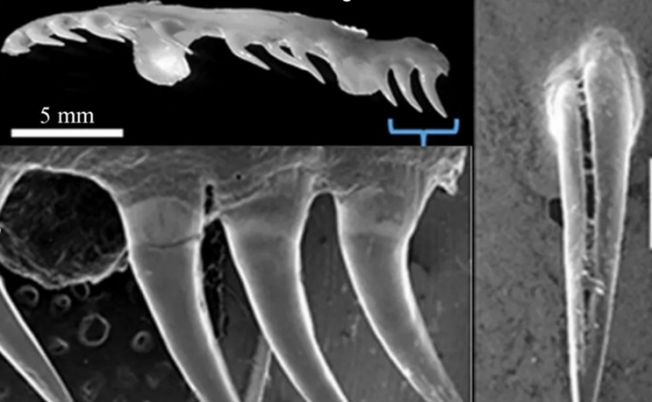 后沟牙毒蛇与前两种毒蛇不太一样。它们没有毒腺,而是拥有一个类似唾液腺的器官——“达氏腺”,它们的上颌骨后端几颗牙侧面具有一个沟槽,捕猎时分泌达氏腺液顺着沟槽注入猎物体内。