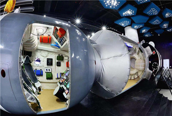 是国内唯一、以1:1比例还原天宫一号和神舟飞船对接的航天互动体验舱。在“天宫一号”里我们可以模拟接收航天地面指控室发出的任务,完成飞船发射、变轨调姿、交会对接三个任务;还可以体验宇航员在太空中的工作生活场景,进行太空育种模拟实验。