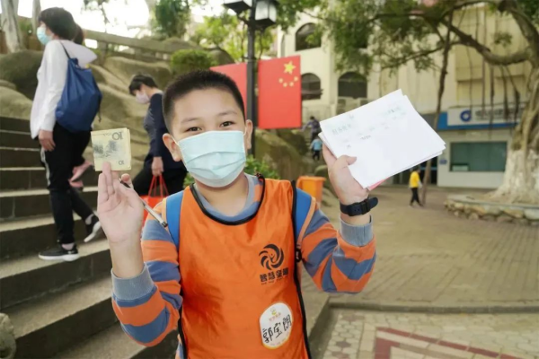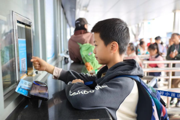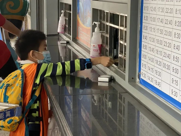 开启独立挑战第一步,孩子们自行购票。(带好医社保卡,家长给孩子准备10元钱,8元轮渡票,2元启动资金)