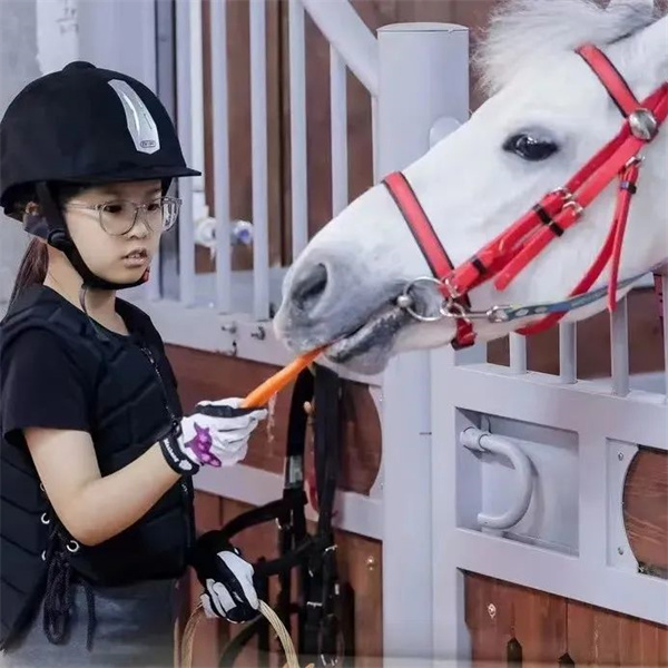 马术是需要人与动物配合完成的运动,要求人与马之间能够形成默契,互相信任。马术能够引导小朋友与动物亲密交流,培养耐心和爱心,让小朋友更加开朗乐观,善于沟通。