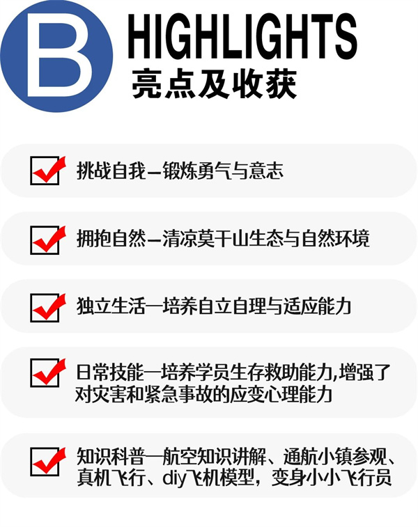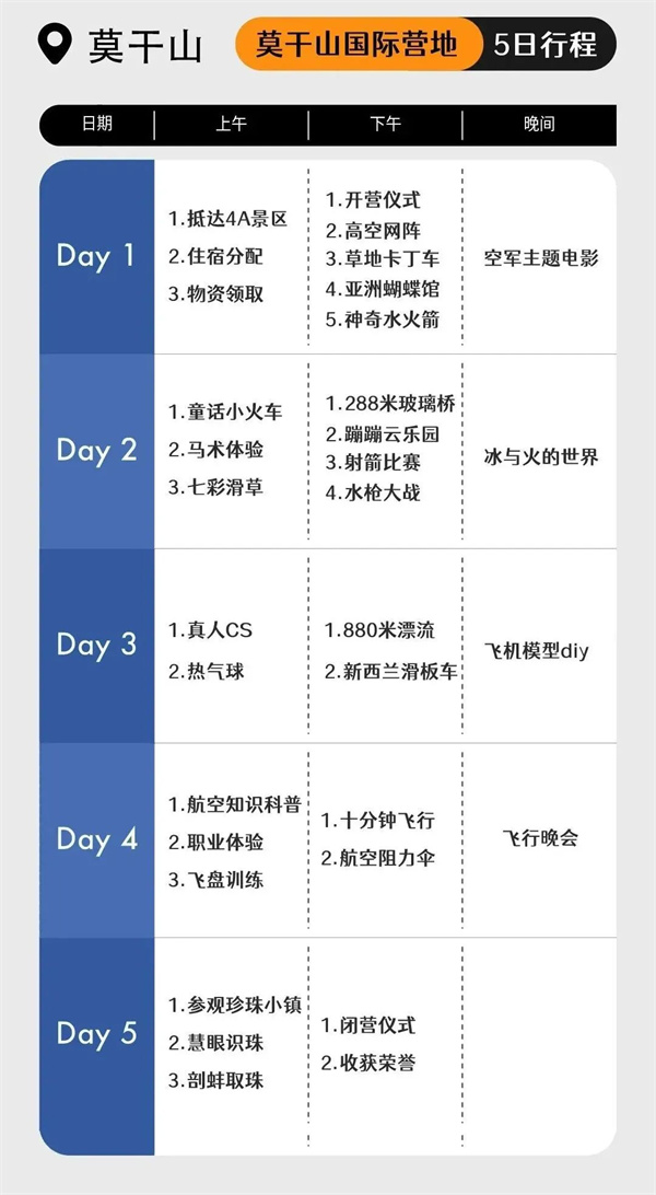 费用包含:5日营期内活动用车,5天4晚食宿,营服套装,营员手册,荣誉证书,景区门票,项目活动费,导师费,全程摄影等。
