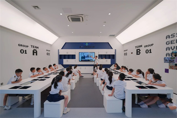 系统理论课堂:穿上飞行员的服装,化身小小飞行员,听老师讲飞行课程,观看飞行安全宣传视频,为飞行安全做知识储备,通过实验了解空气动力原理。