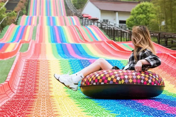 七彩滑道:从山坡上的两道彩虹中滑下,整个身子仿佛在彩虹上飘,滑草、彩虹滑道,孩子们在尖叫和心跳中,可以体会畅快淋漓的极速滑翔。