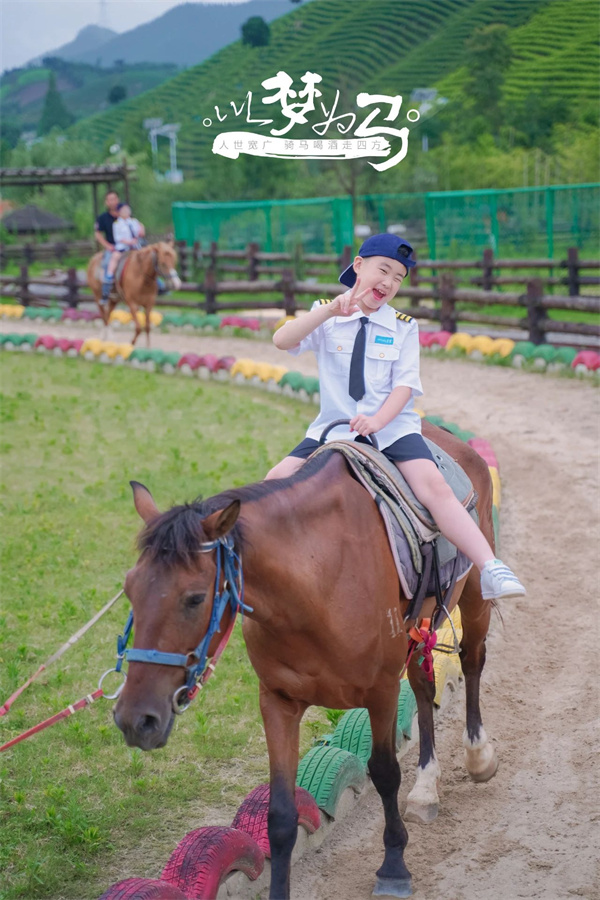 骑马射箭:面对蓝天白云和碧绿的茶山,只想在广阔的农场上驰骋,各位小小勇士们可以自己选一匹爱驹,在教练的指导下,体验一下马背上的精彩!
