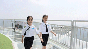 高空玻璃桥:在288米长的高空透明玻璃桥上,有的宝贝会犹豫不前,有的宝贝大胆奔跑,但最后一定会互相牵手,陪伴害怕的小伙伴克服困难,走完全程。
