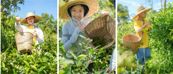 上午:【采大树茶】在当地专人的带领下,孩子们背上背篓、戴上草帽、涂上防蚊液,学习采摘大树茶叶,体验采茶乐趣,识别大树茶、感受茶农采茶艰辛。