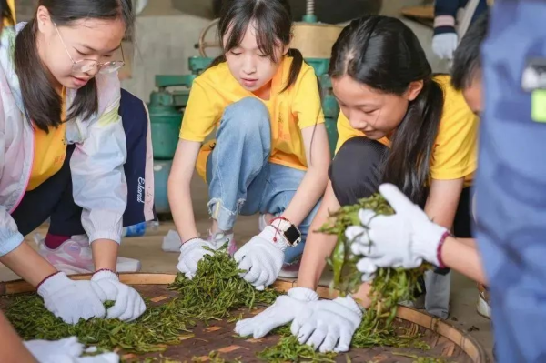 【制茶体验】在老师的带领下,在制茶坊了解制茶流程,根据不同的季节:杀青、揉茶、压茶、包装。