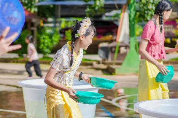 身穿美丽的傣族服装,体验当地最隆重的节日—泼水节;泼洗夏日的炎热。
