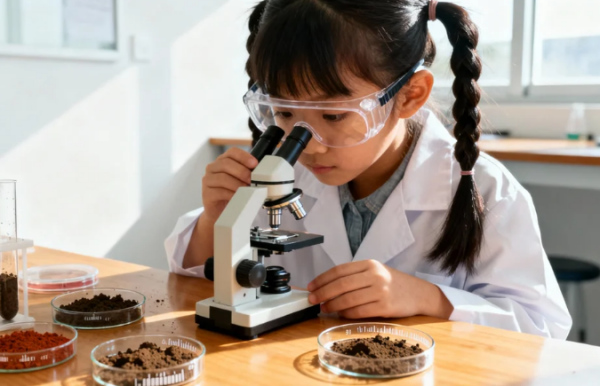 静心观察: 在显微镜下观察泥土,需要全神贯注。他们收获的不仅是知识,更是沉下心来专注于一件事的能力。