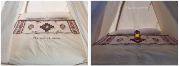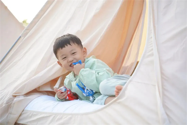 夜深了,钻进印第安帐篷小家,小小天地,大大温暖,和爸爸妈妈在一起,就是最美好的时光。