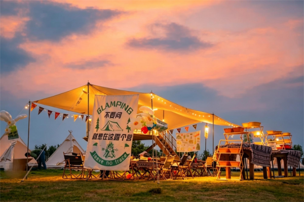 迎着微风的浪漫和慵懒,天幕下的桌子、椅子一应俱全,可以搭配上一些水果, 一场大自然里朋友的野餐会,一起看云卷云舒,伴着落日的余晖肆意畅聊。