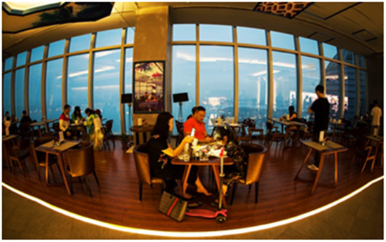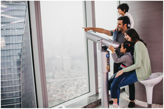 购票入场的途中有精彩的Preshow,酷炫的多媒体互动。超高速电梯只要45秒便可直达55F观光厅,速度开启期待已久的高空观光体验。